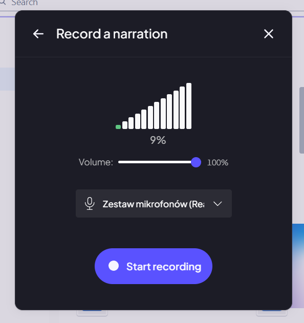 Click to upload the audio file from your computer, or click the button to record a voiceover.