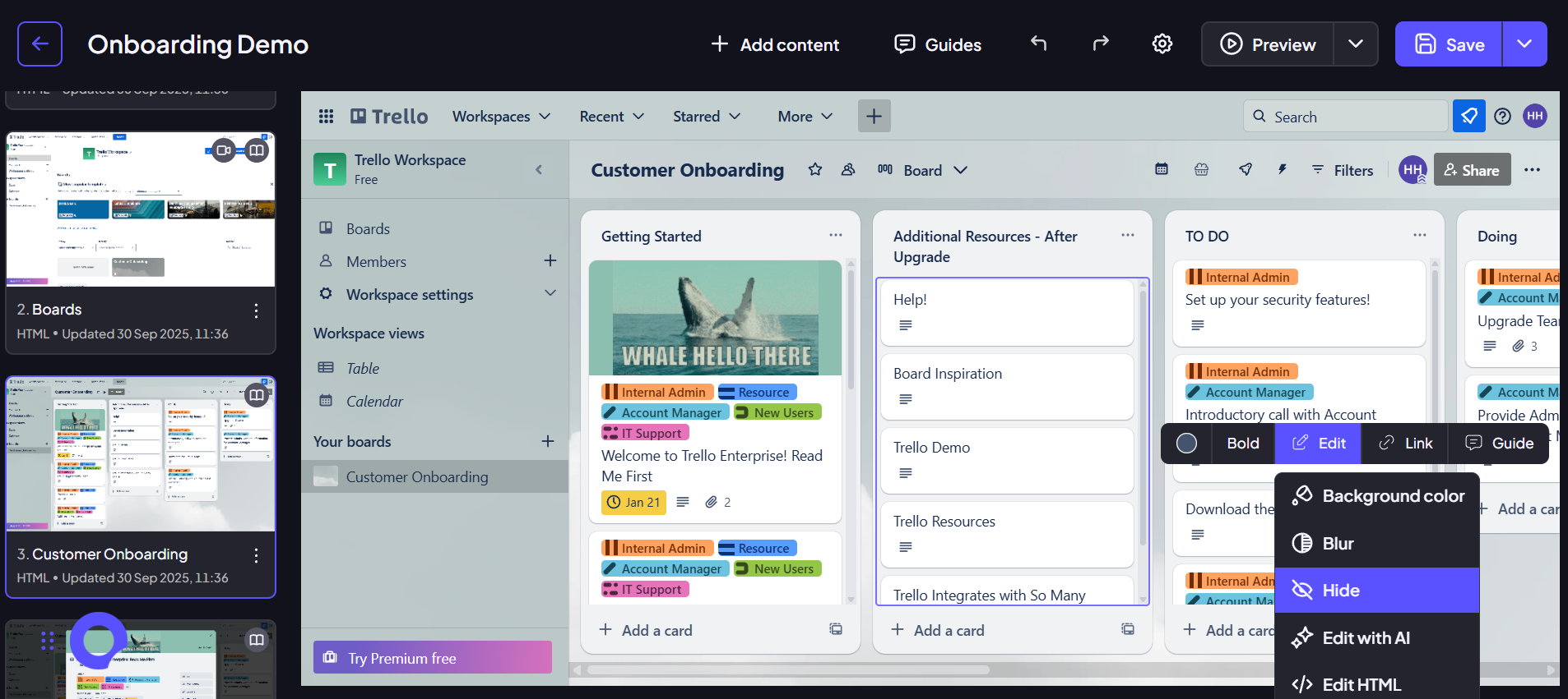 If you need to quickly reach an element blocked by a popup, follow these 5 steps using the edit toolbar: