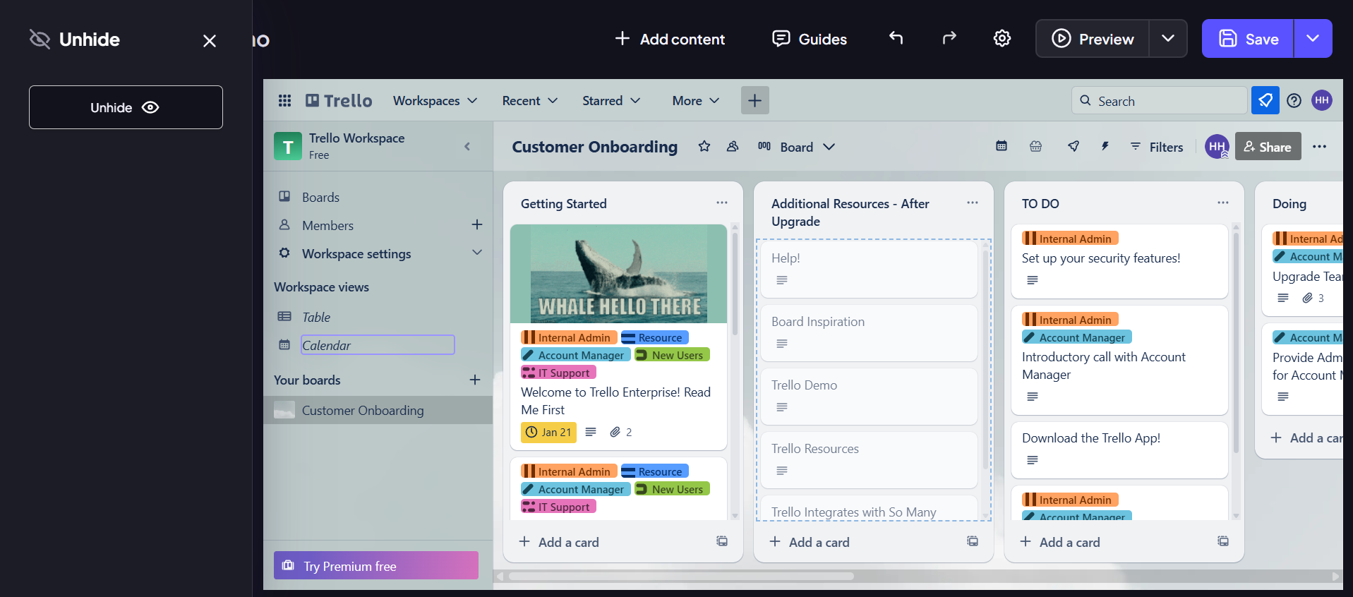 Click on the Settings icon, you will find Hidden Elements there, to unhide the overlay and restore the original look of your screen click on the element displayed on the list. Save the screen.