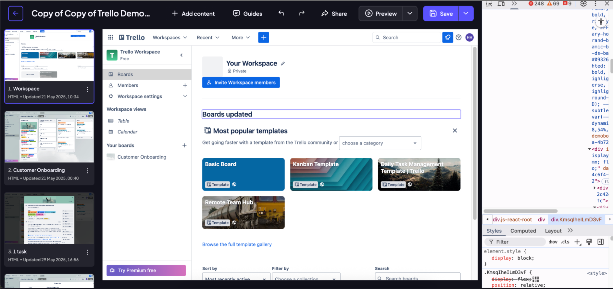 After editing and saving the screen, return to the inspector. There, you should either remove the display: none property or change it to display: block. Finally, save the screen.