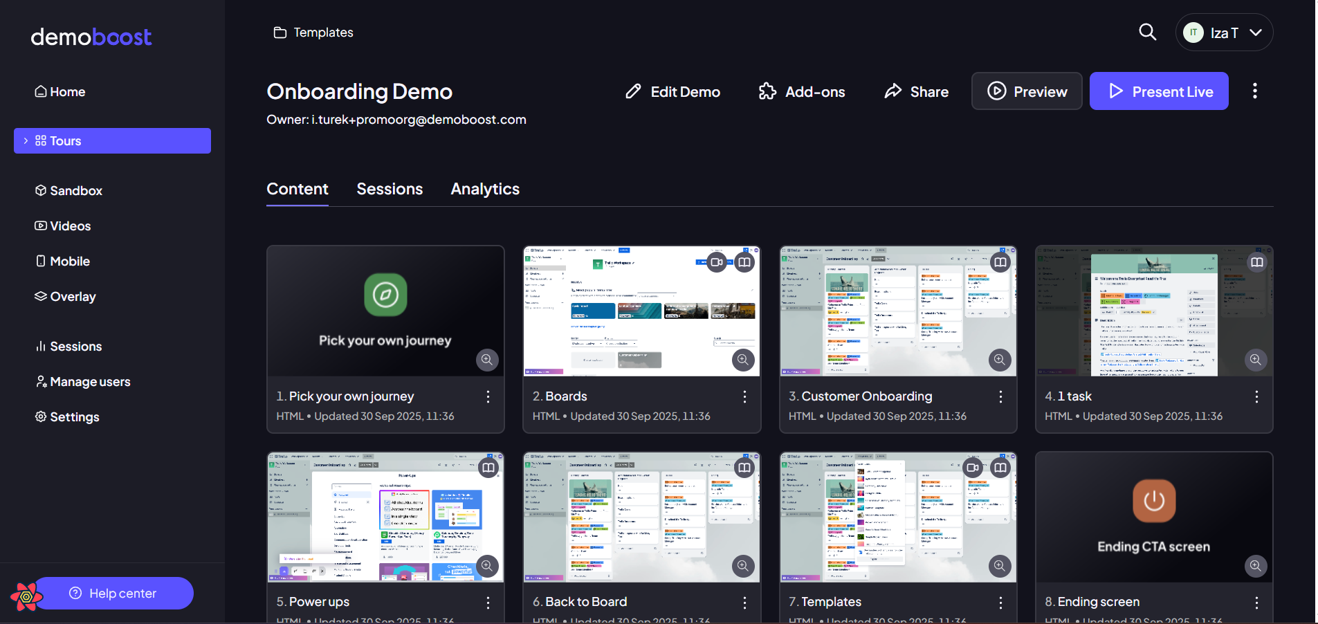 On-demand demos are demos intended to be viewed asynchronously - instead of presenting a demo during a meeting, you can simply send a link for the potential customer to check it out themselves whenever they want.