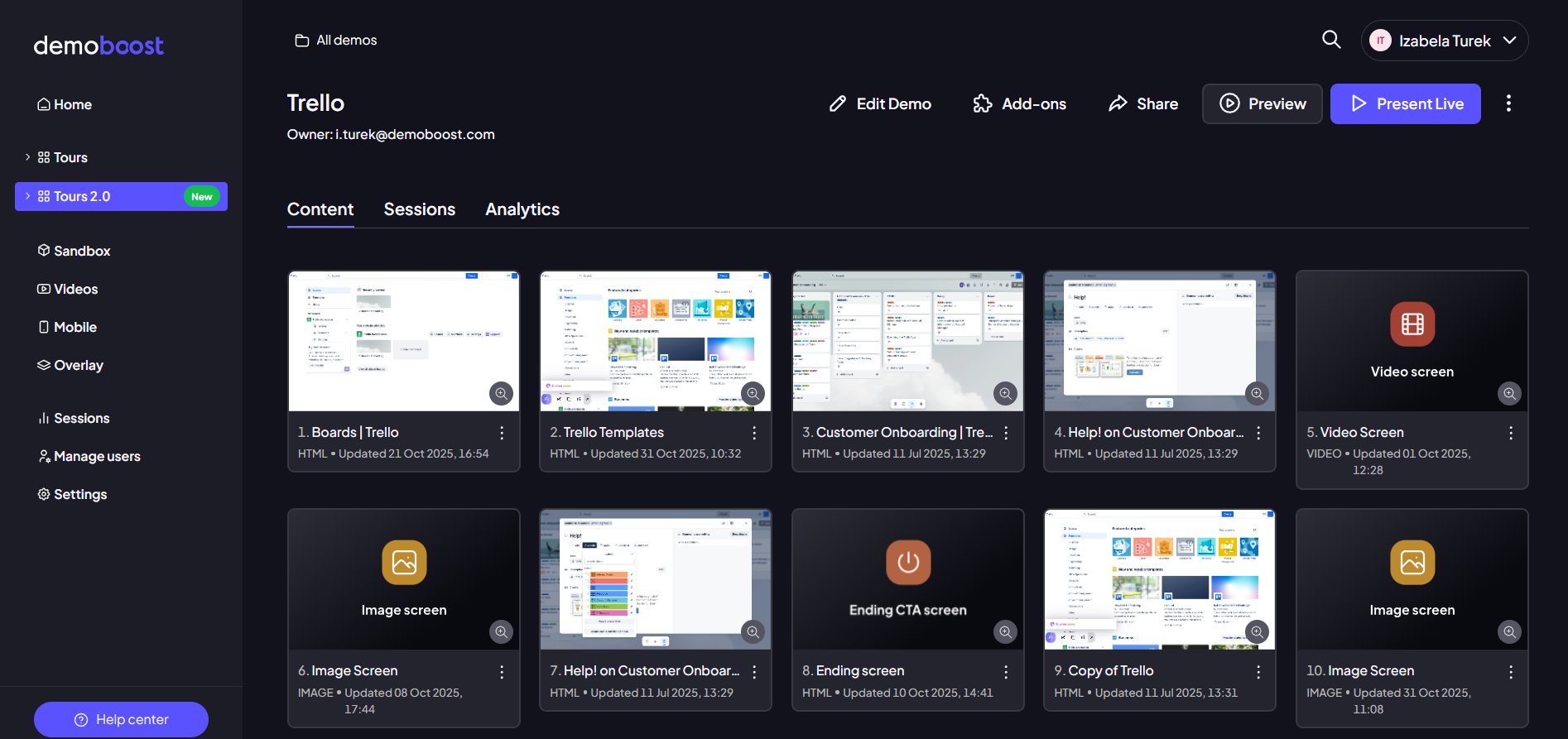 In the Share demo guide, we've discussed the method of sharing demos in the On-Demand mode, and briefly mentioned that we also have a mode for presenting the demos live - we call this feature Live Sessions.